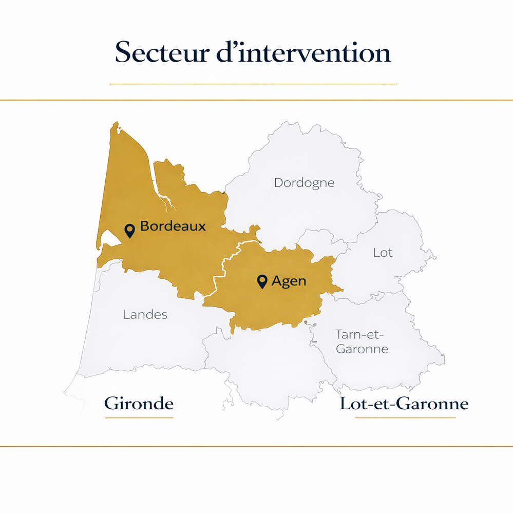 J’interviens principalement en Gironde et Lot-et-Garonne, avec un réseau national et européen permettant de présenter les dossiers à des acquéreurs qualifiés en France et en Europe.